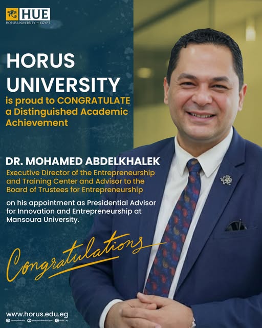 تتشرف جامعة حورس – مصر بخالص التهنئة للسيد الأستاذ الدكتور/ محمد أحمد ضبعون بمناسبة توليه منصب نائب رئيس الجامعة لشؤون التعليم والطلاب
