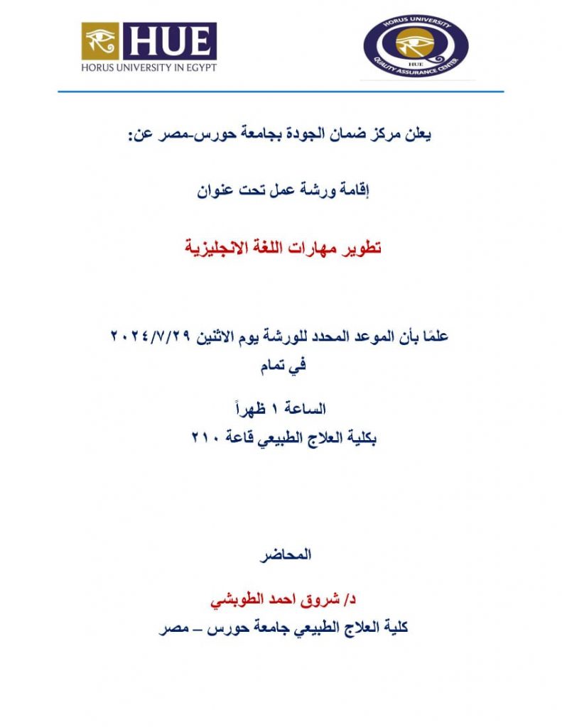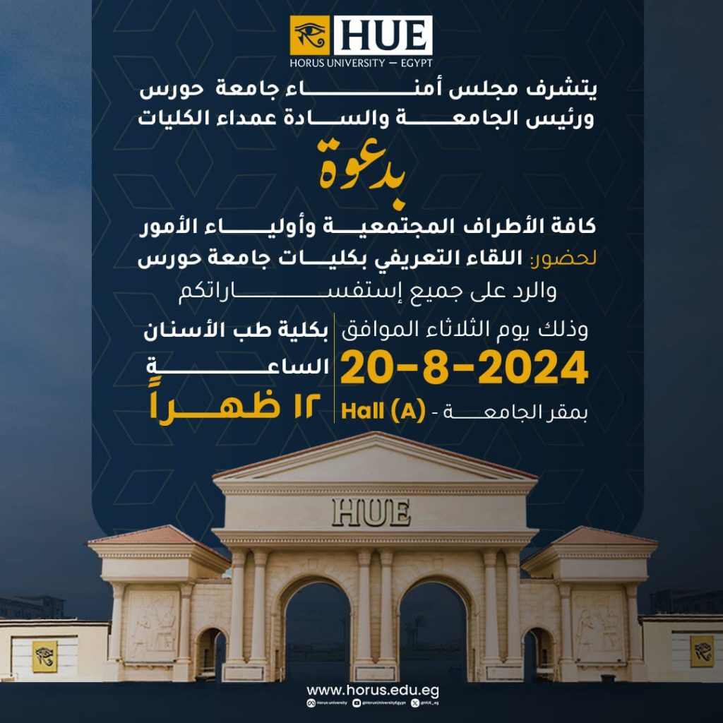 دعوة الأطراف المجتمعية و أولياء الأمور لحضور : اللقاء التعريفي بكليات جامعة حورس By Eng. Abdel Rahman Youssef دعوة الأطراف المجتمعية و أولياء الأمور لحضور : اللقاء التعريفي بكليات جامعة حورس Read More »