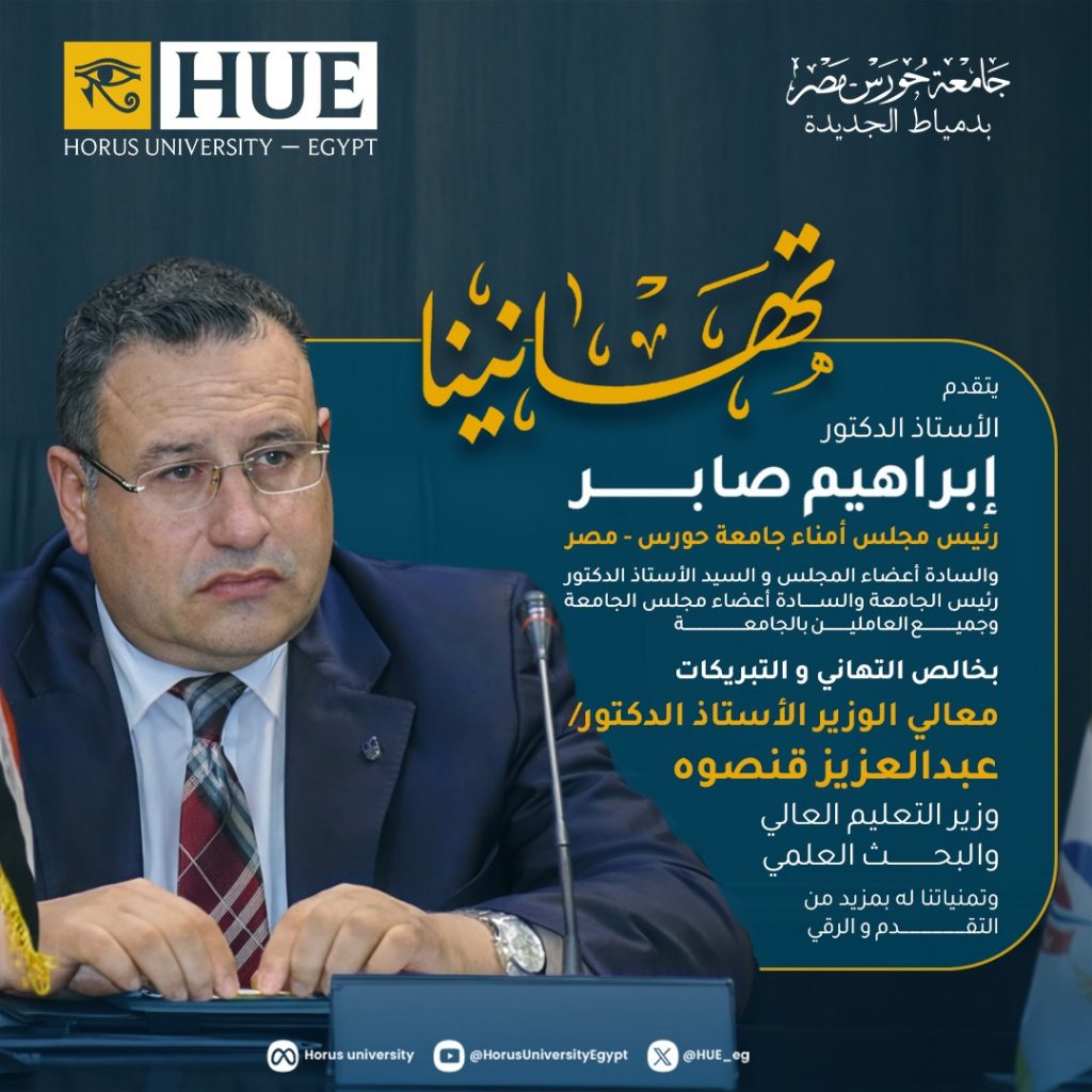رئيس مجلس أمناء جامعة حورس يبعث ببرقية تهنئة لوزير التعليم العالي
