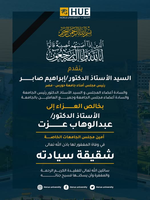 نعي وفاة شقيقة الدكتور عبد الوهاب عزت